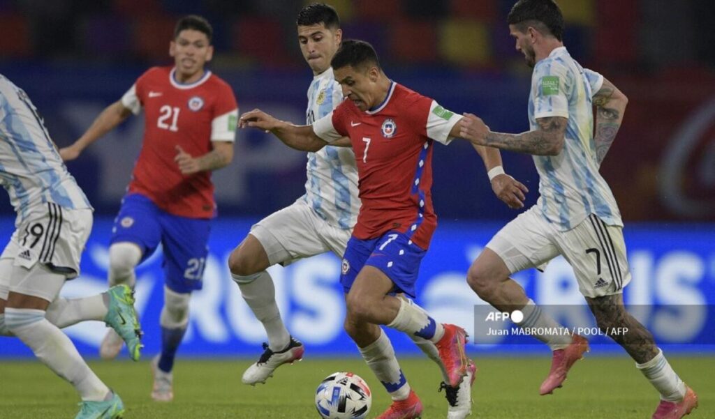Chile quedó en zona de riesgo al caer 2-1 con Argentina, sin Messi, que ahora le disputa a Brasil el liderazgo del premundial, y extendió a 28 partidos su invicto, incluidas las 15 fechas del premundial.