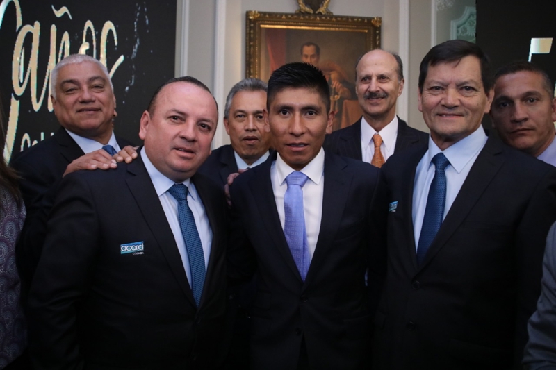 - Adelante: Faiver Hoyos, Presidente Acord Colombia. Nairo Quintana, Ciclista Colombiano; Jairo Giraldo, Secretario General Acord Colombia. Atrás. Julio César Campos, Secretario Ejecutivo Acord Colombia; Carlos Julio Castellanos, Vice Presidente 1° AIPS América; Jorge Ovidio González, Presidente Federación Colombiana de Ciclismo y Gabriel Barrera, Miembro Acord Colombia. / In front: Faiver Hoyos, Acord Colombia President. Nairo Quintana, Colombian Cyclist; Jairo Gialdo, Acord Colombia General Secretary. Back: Julio Cesar Campos, Acord Colombia Executive Secretary; Carlos Julio Castellanos, AIPS América Vice President; Jorge Ovidio González, Colombian Cycling Federation President and Gabriel Barrera, Acord Colombia Member.