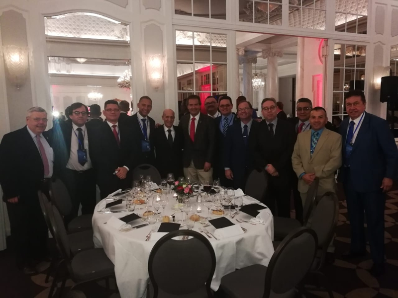 Delegados de américa compartiendo la mesa con Neven Ilic (Chile), presidente de Panam Sports, Julio Maglione (Uruguay), presidente de la Federación Internacional de Natación, y Camilo Pérez (Paraguay), presidente de ODESUR. Ocurrió el pasado lunes 21 en Lausana, tras la gala de los premios AIPS.