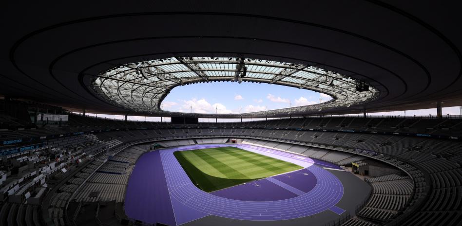 El gran símbolo de los Juegos Olímpicos de París 2024 ya luce en el Estadio de Francia y lo hace con unos colores nunca vistos. La organización presentó la revolucionaria pista de atletismo en dos tonos púrpura para remarcar las calles y en gris para señalizar la zona exterior, siguiendo la imagen corporativa.