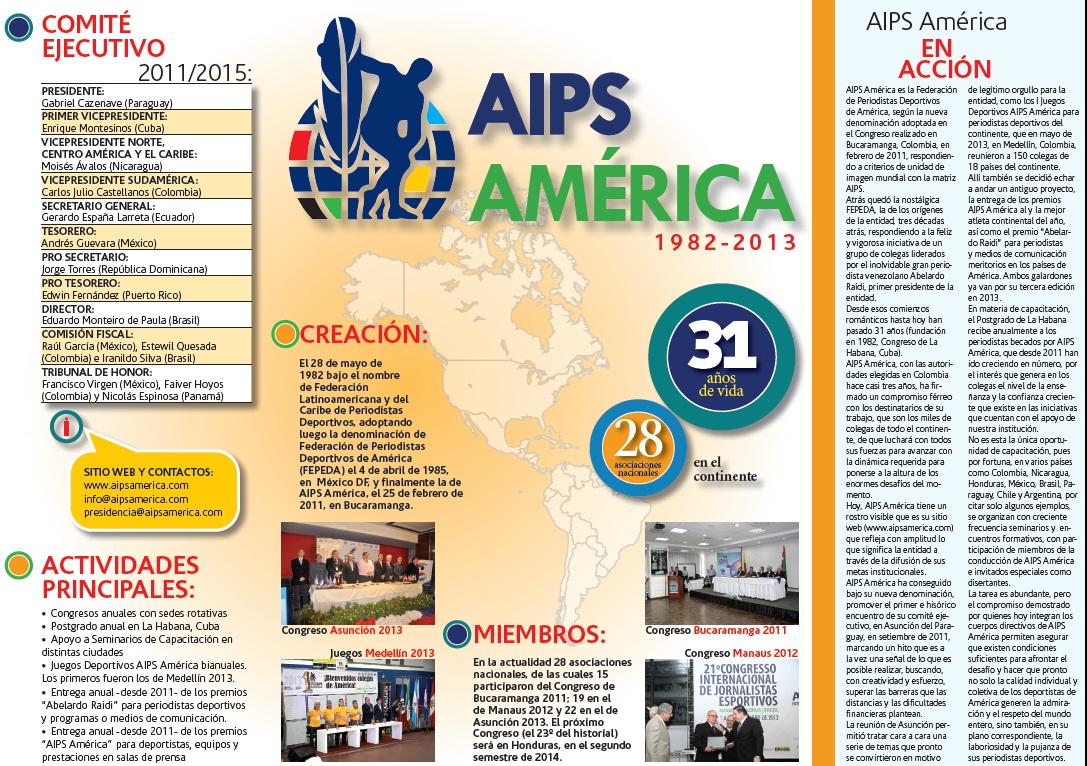 To welcoming the 2014, we found no better way to do it through a reminder of the most important activities developed by AIPS America in recent years (2011/2013).
