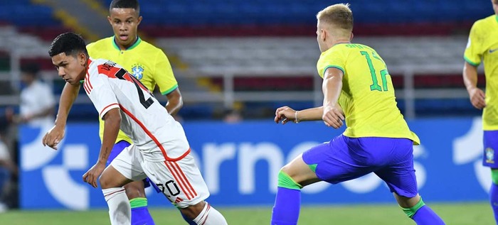 Andrey Santos se animó a disparar, se confundieron el arquero y un defensor peruano, mientras la pelota entró mansa al pórtico para el 2-0, sobre 32 minutos.