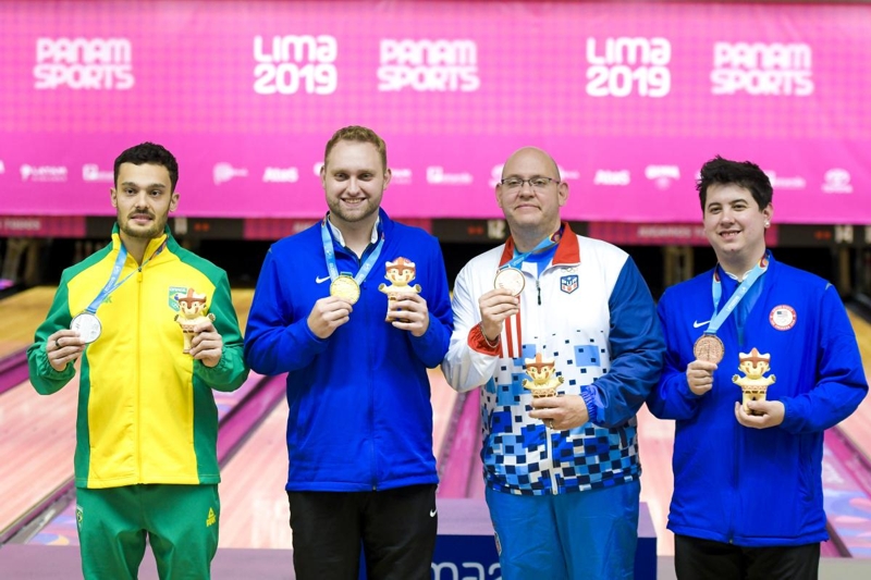 Pan-Americanos de Lima. O jogador americano Nicholas Pate derrubou 190 pinos,