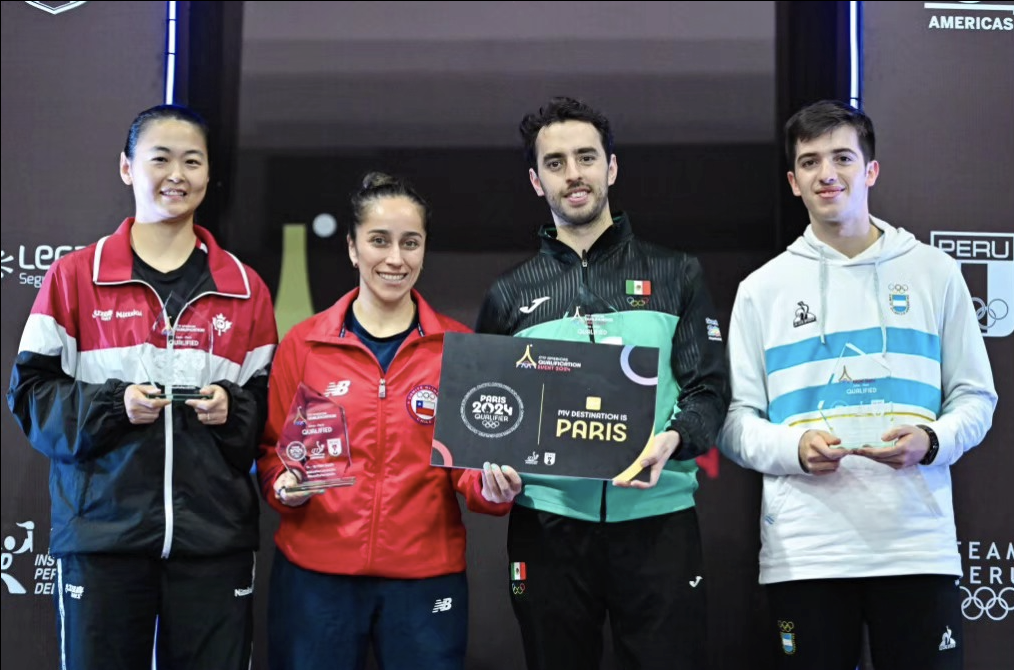 Se trata Mo Zhang, Paulina Vega, Marcos Madrid y Santiago Lorenzo respectivamente que sellaron sus pasajes a la cita en Francia, gracias a su increíble desempeño en el ITTF Americas Olympic Qualification en la ciudad de Lima. Todavía están en disputa 4 cupos más para la cita olímpica.