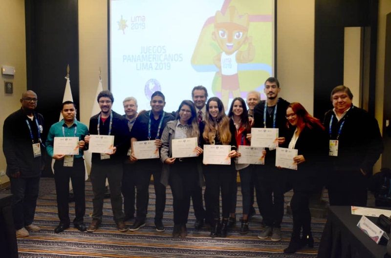 Los JR de AIPS América con los diplomas entregados por el presidente de Panam Sports, el chileno Neven Ilic.
