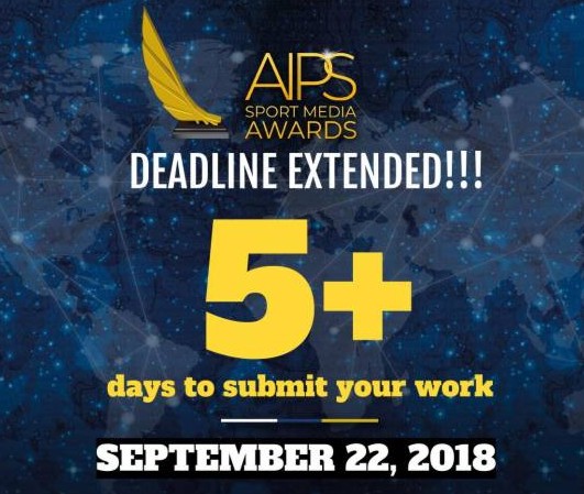 LAUSANA, Suiza, 16 de setiembre de 2018.- A medida que se acercaba la fecha límite para el envío del AIPS Sport Media Award, y después de recibir muchos mensajes pidiendo una extensión, hemos decidido ofrecerles un regalo a todos ustedes: una extensión de cinco días.