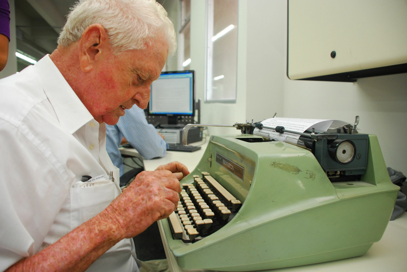 «I used to write at home, in any of the five typewriters I have, I had many and now they are useless to me: I have sight problems and it is impossible for me to write. Now I also have to hear everything, not as before that I read it, I have to dictate to my grandson, “Chelito” de Castro (21 years old and International Business student). We are aligned to not going beyond the space, and then I send them”.