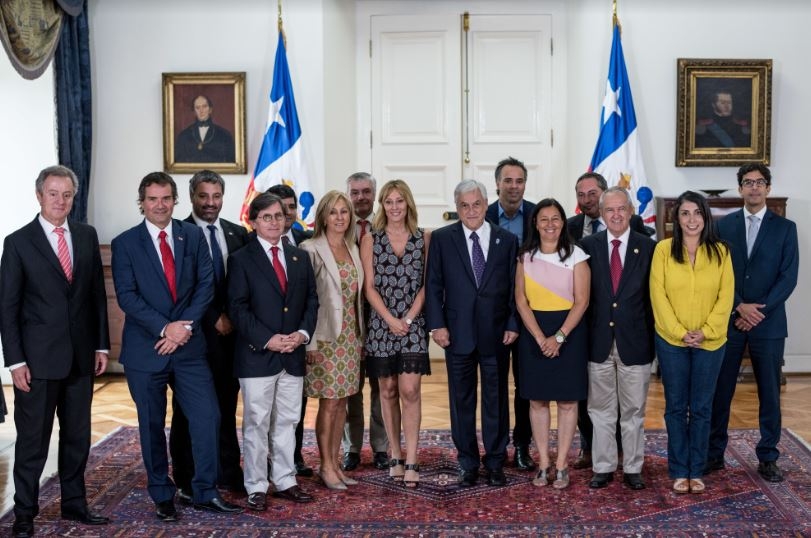 Sebastián Piñera, Presidente de la República de Chile, junto al nuevo Directorio de la Corporación de los Juegos Panamericanos Santiago 2023, en el Palacio de Gobierno. Foto: Comité Olímpico Colombiano.