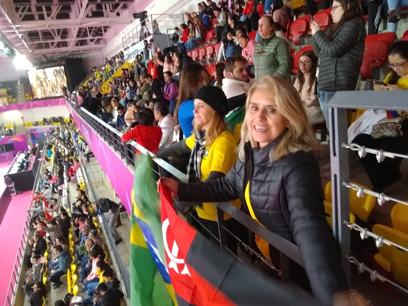 A academia se chamava Cláudia Delgado, que não por acaso é o nome da fundadora e, também, da primeira professora de ginástica de Caio. Claudia estava sentada ao lado da mãe do atleta. Ela também veio prestigiar o pupilo em Lima. «O Caio teve vários professores depois de mim, mas ficou comigo dos 3 aos 7 anos. A vida dele foi uma construção e a mãe é a mola propulsora disso. A família faz o atleta chegar aonde está», opinou.