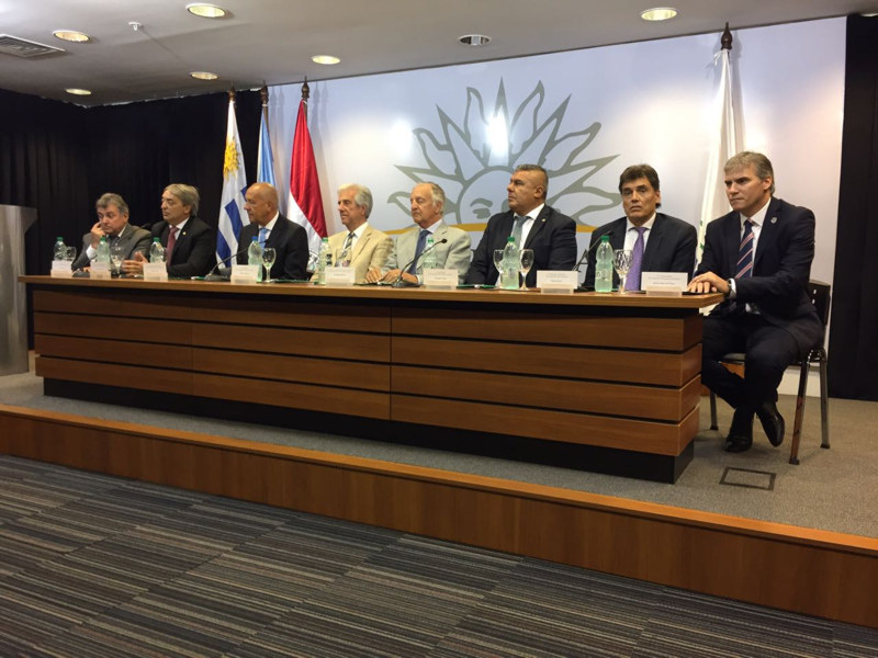 Foto del encuentro de autoridades gubernamentales de Argentina, Uuguay y Paraguay en Montevideo (Foto: SND).