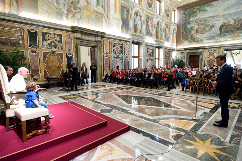 «Unifield Football» y con la presencia del presidente de Special Olympics Tim Shriver en la Sala Clementina del Palacio Apostólico, cerca de la Basílica de San Pedro en la Ciudad del Vaticano, el Santo Padre tuvo elogios hacia los deportistas.