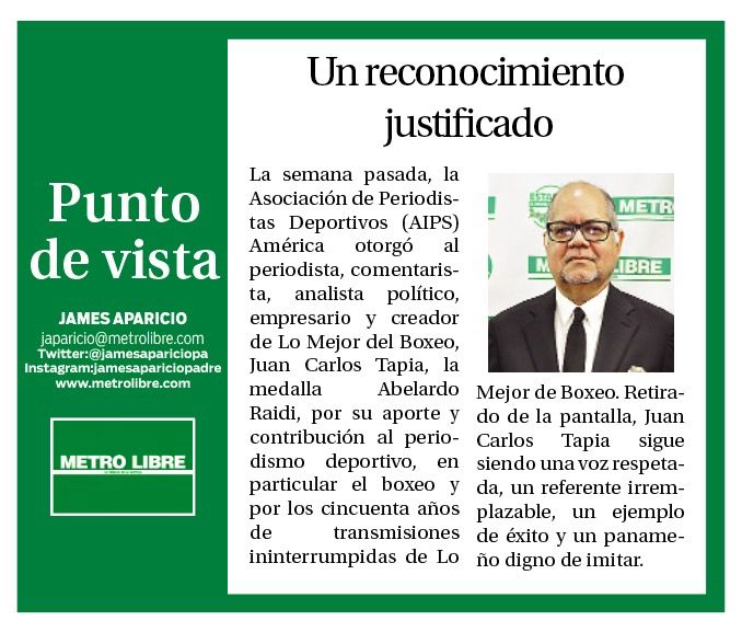 Los medios impresos de Panamá reflejan la brillante carrera de Juan Carlos Tapia, quien además es miembro de la AIPS, lo que otorga aún mayor relevancia a este merecido galardón.