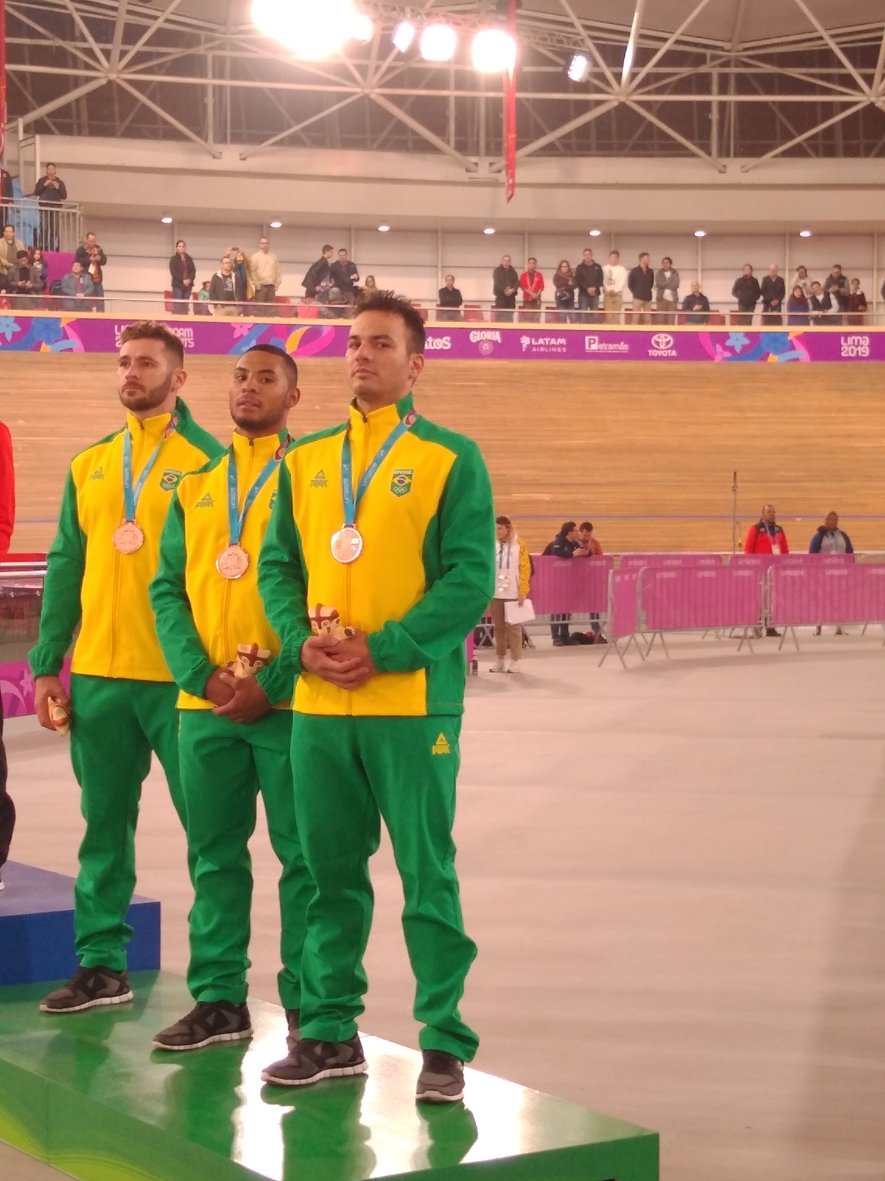 Nessa modalidade de três voltas, em que cada atleta é avaliado em uma, o Brasil conquistou o bronze e isso se deu devido à desclassificação do México. No começo da prova, o México queimou a primeira largada. Já na segunda, Flavio «caiu» no chão, o que foi considerada como mais uma largada invalida. O esporte permite até duas largadas queimadas. Na terceira, o México acabou queimando mais uma vez e foi desclassificado.