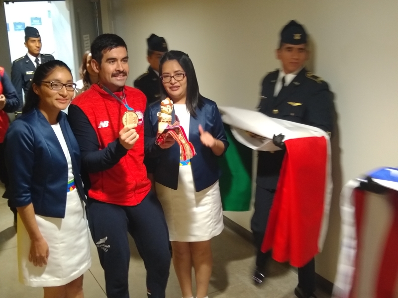 Felipe Peñaloza conquista o bronze e tira fotos com voluntárias.