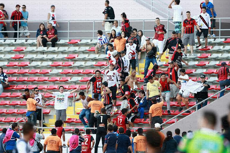 “Transcurría el minuto 41 de la primera parte, cuando una serie de aficionados empezaron a sembrar el miedo en las gradas del Estadio Nacional, golpes, abusos contra la autoridad, robos e intimidación a los espectadores llevaron a los comisarios de UNAFUT, los señores Franklin Jaubert y Adrián Rojas a suspender el partido, ya que la situación era incontrolable”, explica la UNAFUT que es la Unión de Clubes de Fútbol de la Primera División (UNAFUT su nombre abreviado), órgano rector del fútbol costarricense, en su informe oficial, el partido se tuvo que jugar al día siguiente, a partir de las tres de la tarde, si aficionados, finalizó 0-0.