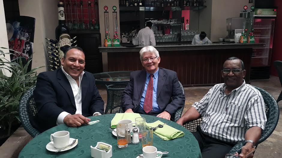 Montesinos (centro) junto a Filiberto Díaz (derecha) y Mario Pinel (izquierda) en una de las reuniones de trabajo en Tegucigalpa. / Montesinos (center) with Filiberto Diaz (right) and Mario Pinel (left) in one of the work meetings in Tegucigalpa.
