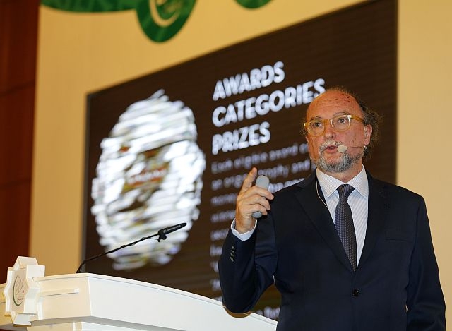 Gianni Merlo, presidente de AIPS, presentando el Sport Media Pearl Award. / Gianni Merlo, president of AIPS, introducing Pearl Sport Media Award.