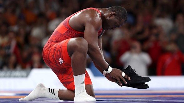 El tatami del Champ-de-Mars Arena fue, el 6 de agosto, el escenario de una de las escenas más emotivas de los Juegos Olímpicos de París 2024. La leyenda más grande de la historia de la lucha olímpica, el cubano Mijaín López, apoyaba sus zapatillas en el centro de la colchoneta, en señal de su adiós definitivo a la lucha… y como no podía ser de otra manera, lo hizo con un nuevo oro olímpico.