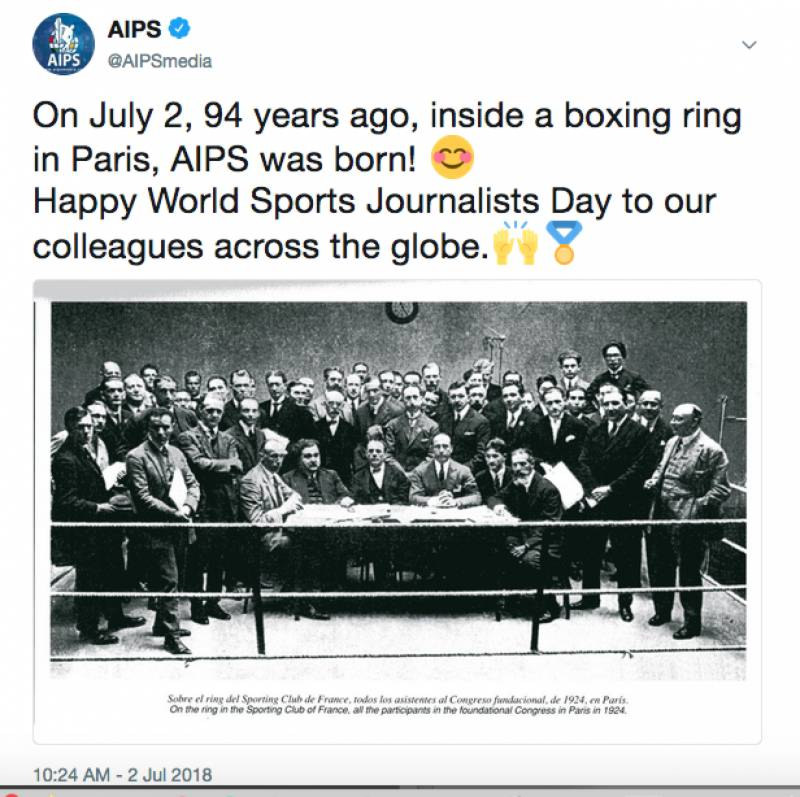 On this World Sports Journalists Day, I remind all our colleagues that it is vital for our profession to invest in culture, to avoid being put in a corner and held hostage by the people who have the power and want us to only be servants of their hidden wishes. We have a dignity to defend. We are working every day to defend the rights of the young generations so they can have a better future. Sport brings the feeling of joy, friendships and culture. Look at what is happening these days in Russia with the World Cup, the great atmosphere. We have to defend this even by tweeting, but in the right way.