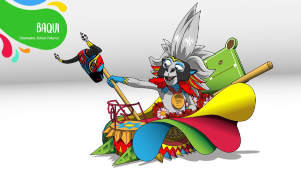 La carroza fue diseñada por Rafael Polanco y rinde homenaje al deporte entre flores y tambores representativos de la Región Caribe. En ella irá el anfitrión de los juegos, Baqui, el mono tití cabeciblanco, acompañado por la Miss Mundo Colombia 2017-2018, María Beatriz Daza Núñez.
