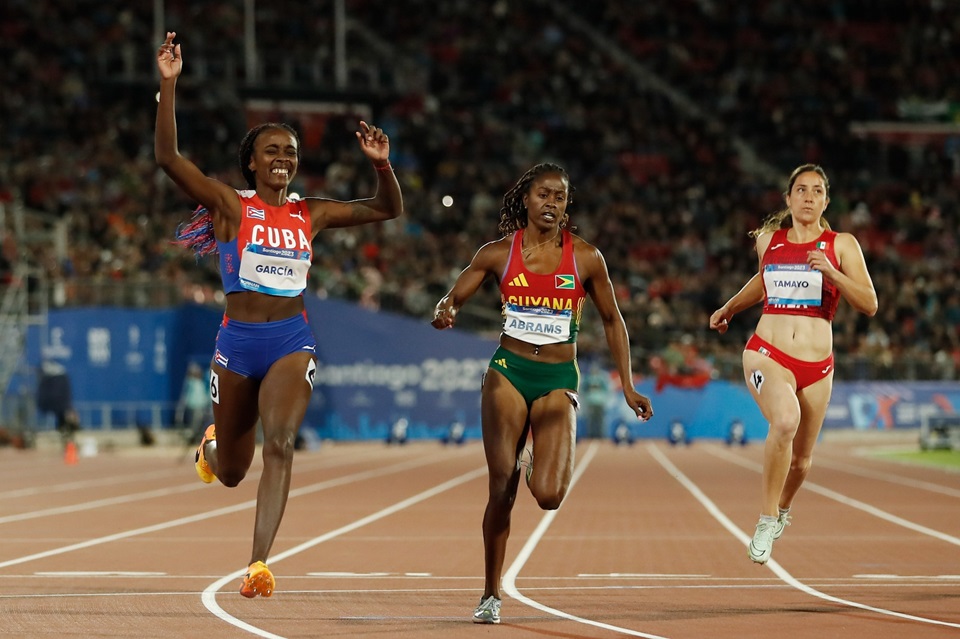 Por otra parte, en la categoría femenina la ganadora de los 100 metros planos fue la seleccionada de Cuba Yunisleidy García, consiguiendo una marca de 11.53 segundos, obteniendo la medalla de oro y su primera presea panamericana en su carrera deportiva. La plata fue para Jazmín Abrams de Guyana, registrando una marca de 11.52 segundos y el bronce lo obtuvo Michelle-Lee Ahye de Trinidad y Tobago. Esta última deportista obtuvo la medalla de plata en los Juegos Panamericanos de Lima 2019.