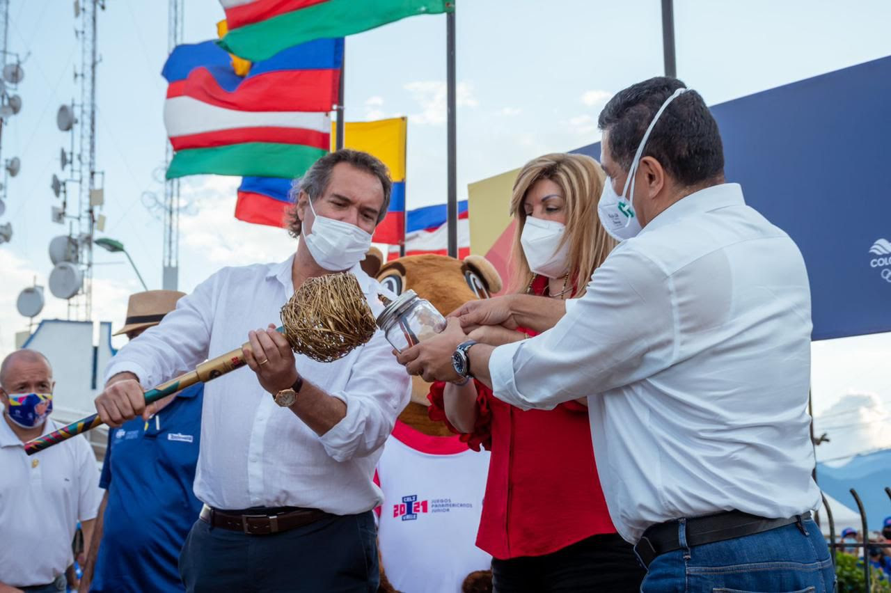 A los pies del monumento de Cristo Rey, un grupo de Scouts de Colombia fue el encargado de encender el fuego y entregarlo a las autoridades locales encabezadas por el alcalde de Cali, Jorge Iván Ospina, la gobernadora del Valle del Cauca, Clara Luz Roldán, quien sostuvo el farol para que el Presidente de Panam Sports, Neven Ilic, encendiera la antorcha que fue presentada al mundo y entregada a los atletas Valeria Cabezas y Juan Manuel Morales, en representación de los jóvenes deportistas que participarán en los I Juegos Panamericanos Junior Cali-Valle 2021.