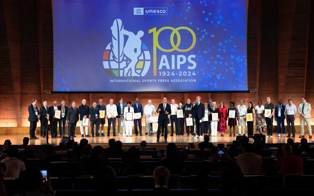 La sede de la UNESCO, una magnífica «estrella de tres puntas» enclavada en el corazón de París, abrió hoy sus puertas a los periodistas deportivos de todo el mundo con motivo de la celebración del centenario de la AIPS. Además de rendir homenaje a la rica historia de la Asociación Internacional de Prensa Deportiva, que se fundó aquí en París en julio de 1924, este evento especial también honró la dedicación de los periodistas que han cubierto 10 o más Juegos Olímpicos de verano e invierno.