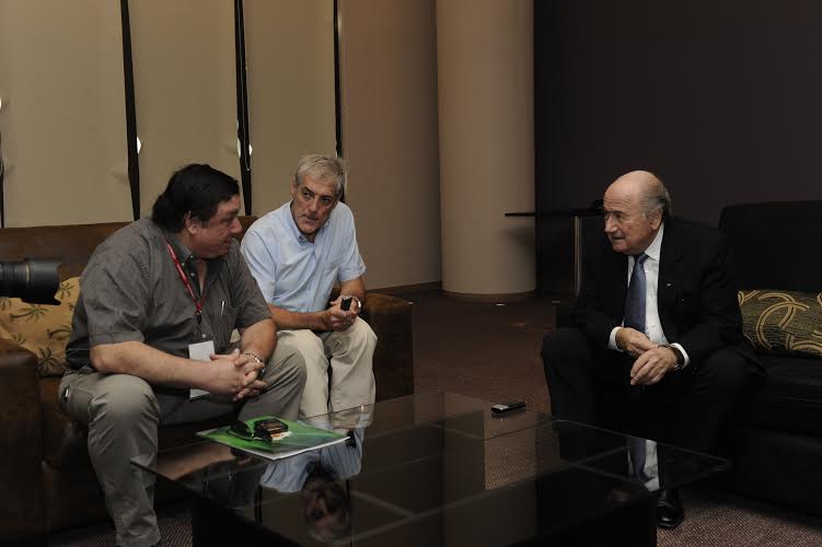 Blatter en una reciente visita a Asunción, durante una entrevista con el presidente de AIPS América, Gabriel Cazenave. /Blatter on a recent visit to Asuncion, during an interview with the president of AIPS America, Gabriel Cazenave.