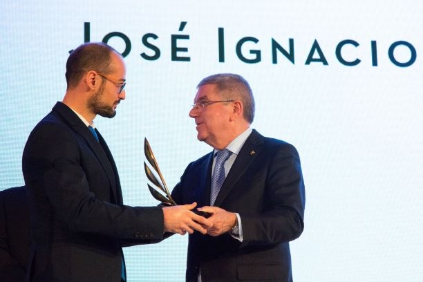 - Jose Ignacio Perez Hernández, uno de los dos ganadores españoles, con el presidente COI, Thomas Bach (Alemania),