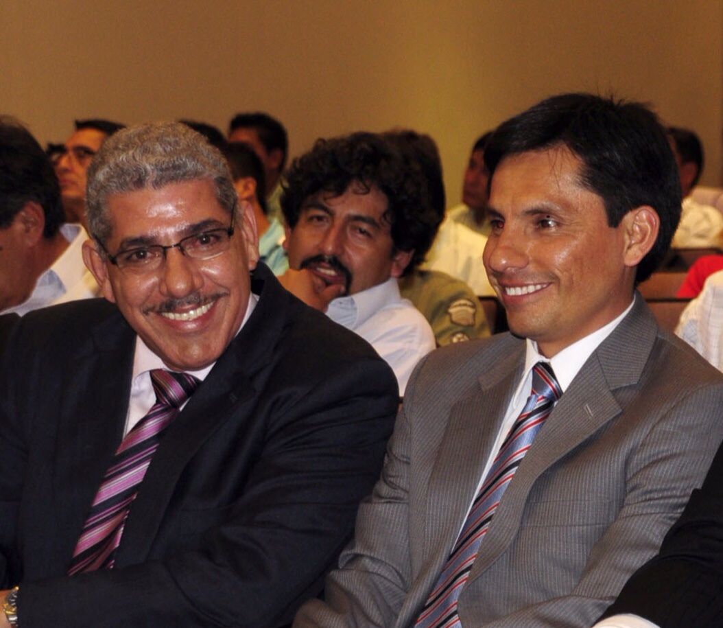 Gerardo España, secretario general de AIPS América (izquierda) y y el ex campeón olímpico de marcha, Jefferson Pérez.