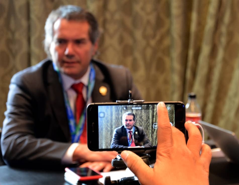 En conferencia de prensa privada con los Jóvenes Reporteros de AIPS América, el dirigente deportivo se mostró satisfecho con el nivel que Perú ha presentado en la organización de los decimoctavos Juegos Panamericanos. A la vez que manifestó su objetivo de impulsar mejoras en todos los aspectos de los Juegos para situarlos en un estatus de mayor calidad.