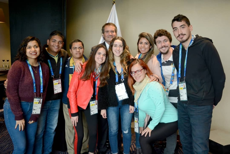 El presidente de Panam Sports durante su conversación con los Jóvenes Reporteros de AIPS América.