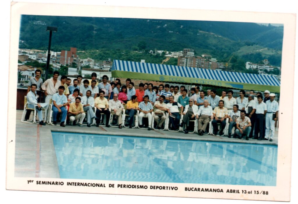 Con motivo de la realización del Primer Seminario Internaional de FEPEDA en Bucaramanga, Colombia, fue captada esta fotografía del grupo donde se encuentran Cereghetti, SEXTO DE IZQUEIRA A DERECHA SENTADO y unos puestos más adelante Abelardo Raidi. Durante el congreso se aprobó la realización de los Juegos ACORD, cuya primera edición fue en Cúcuta.