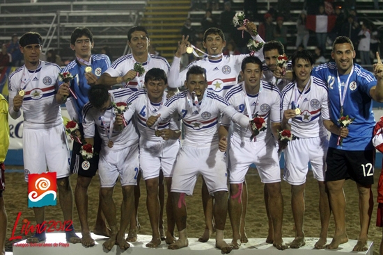 Oro bolivariano. Este es el seleccionado nacional de futbol playa que logró su primera resonante conquista internacional en Lima 2012, en los Juegos Bolivarianos de playa.