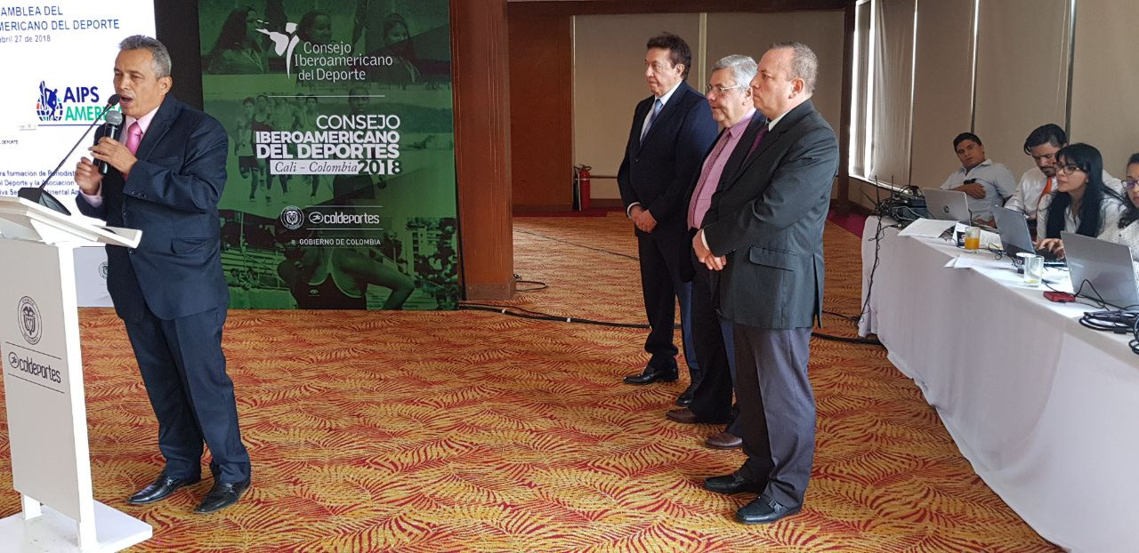 CALI, Colombia, 30 de abril de 2018.- El encuentro de ministros de deportes de América, España y Portugal, que tuvo lugar en esta ciudad el fin de semana último, en ocasión de la asamblea ordinaria del CADE (Consejo Americano del Deporte) y del CID (Consejo Iberoamericano del Deporte), del cual tomó parte una comitiva de AIPS América, arrojó como resultado un convenio entre esta última entidad y las citadas previamente, en pos de generar espacios para la capitación de periodistas deportivos y otros actores del deporte.