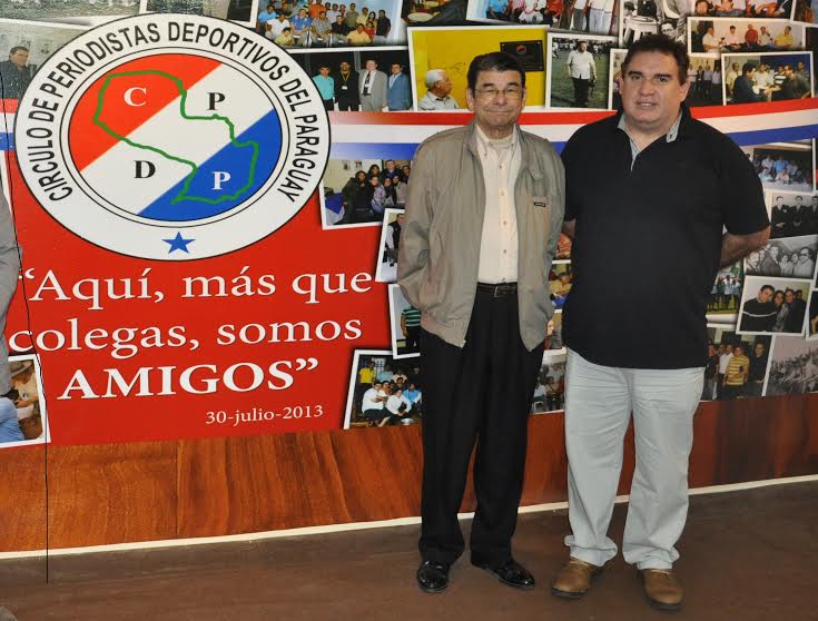 Edmundo Ramírez (izquierda) junto al presidente actual del CPDP, José Solís, en un reciente acto en la Casa del Periodista de Asunción / Edmundo Ramirez (left) with the current president of the CPDP, Jose Solis, in a recent ceremony at the House of the Journalist of Asuncion.