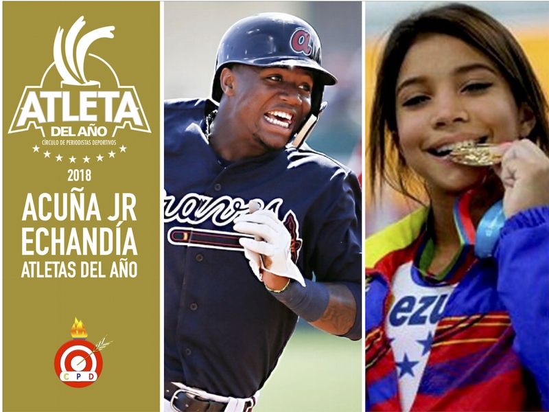 Por: Luis Vargas – Miembro AIPS Traducido por: Constanza Mora – Miembro AIPS CARACAS, Venezuela, 7 de diciembre de 2018.- Ronald Acuña Jr. flamante Novato del Año de la Liga Nacional en el béisbol de las Grandes Ligas (Profesional), y Katherine Echandía...