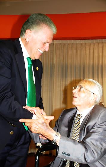 The Polish-Mexican coach and the Baja California Sports Director, Saul Castro, talk during the celebration of the Mexican National Junior Olympic Championships in Tijuana in 2013 / El entreador Polaco-Mexicano conversa con el Director del Deporte de Baja California, Saúl Castro, durante los campeonatos de la Olimpiada Nacional en Tijuana en 2013 (Courtesy of the Baja California Sports Institute / Cortesía del Instituto de Deporte de Baja California)