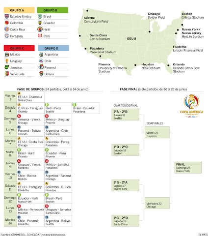 Tendrá participación de los diez países de la Conmebol además de Estados Unidos; México, Costa Rica, Jamaica, Panamá y Haití. Será la 4ª. vez que Estados Unidos recibe un evento de CONMEBOL y 1ª. vez que la Copa América se disputa fuera de la región Sudamérica.